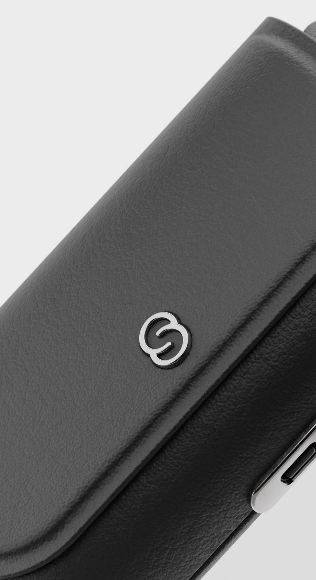 A lustrous leather charging pouch, crafted to enhance both aesthetics and touch. The rich texture of leather provides a refined feel, offering a sophisticated and premium hand experience.
